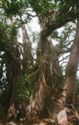 Baobab, der mächtige Kapokbaum, mit teils über zwei Meter hohen Brettwurzeln,