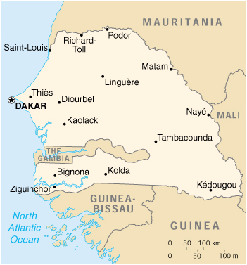 die Landeshauptstadt Dakar, die 500 Kilometer weiter oben, im Norden liegt.